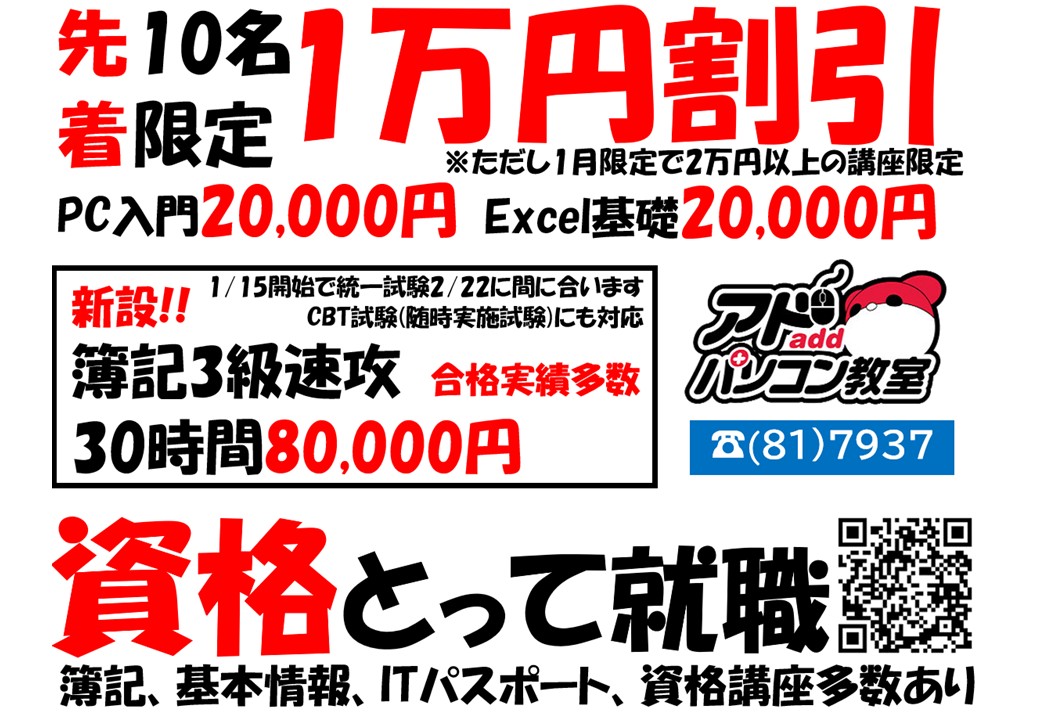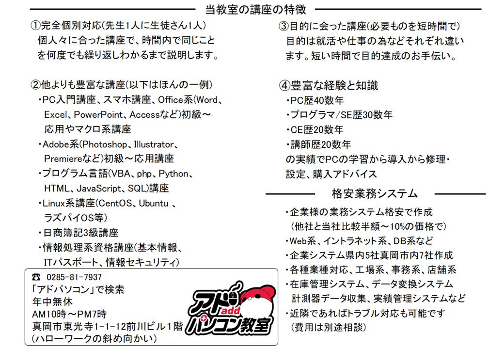 アドパソコン教室は真岡市にあるパソコン教室です。真岡の簿記教室でもあります!!